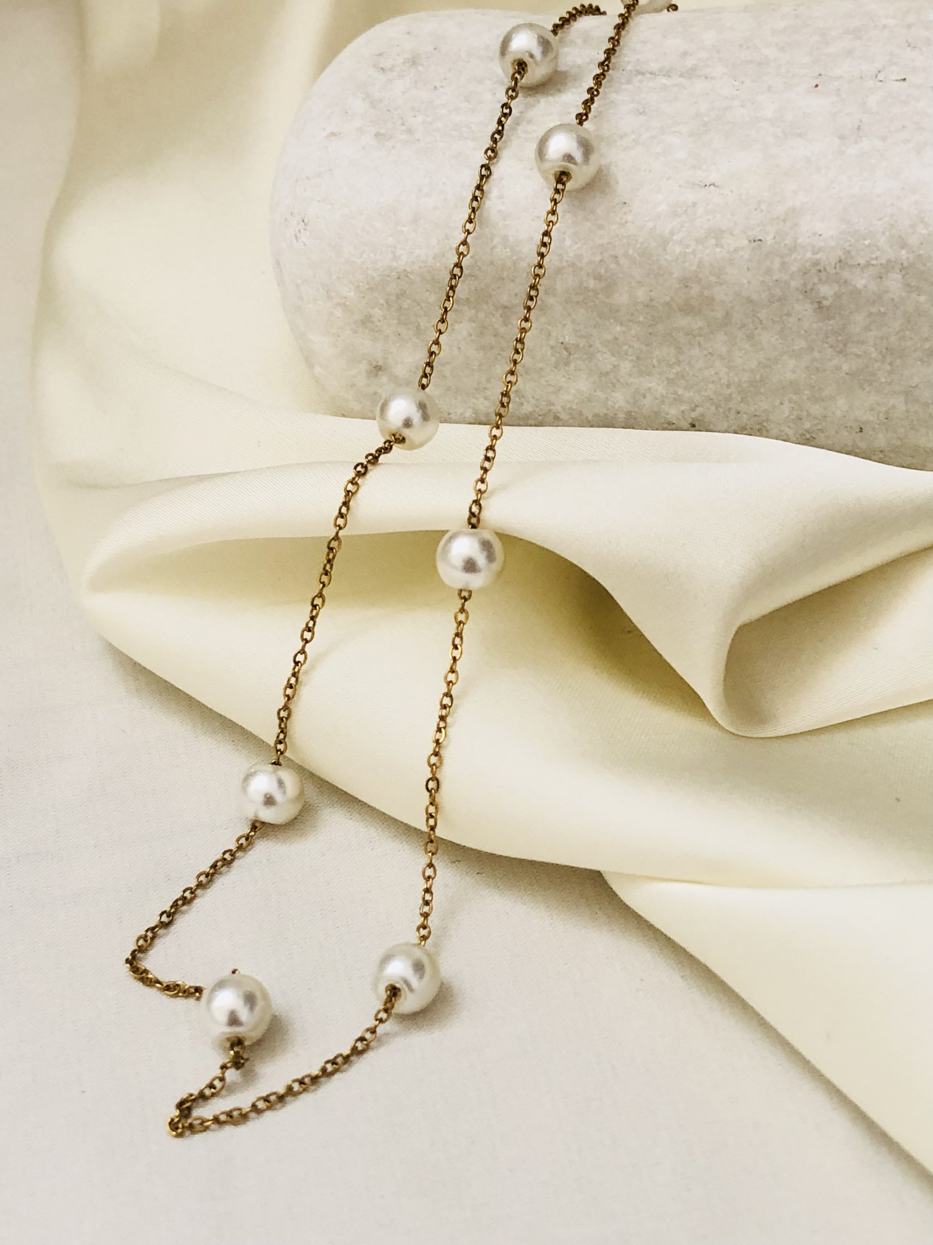 گردنبند مروارید استیل رنگ ثابت: ۴۰سانت و قابلیت سایز تا ۵۰سانت