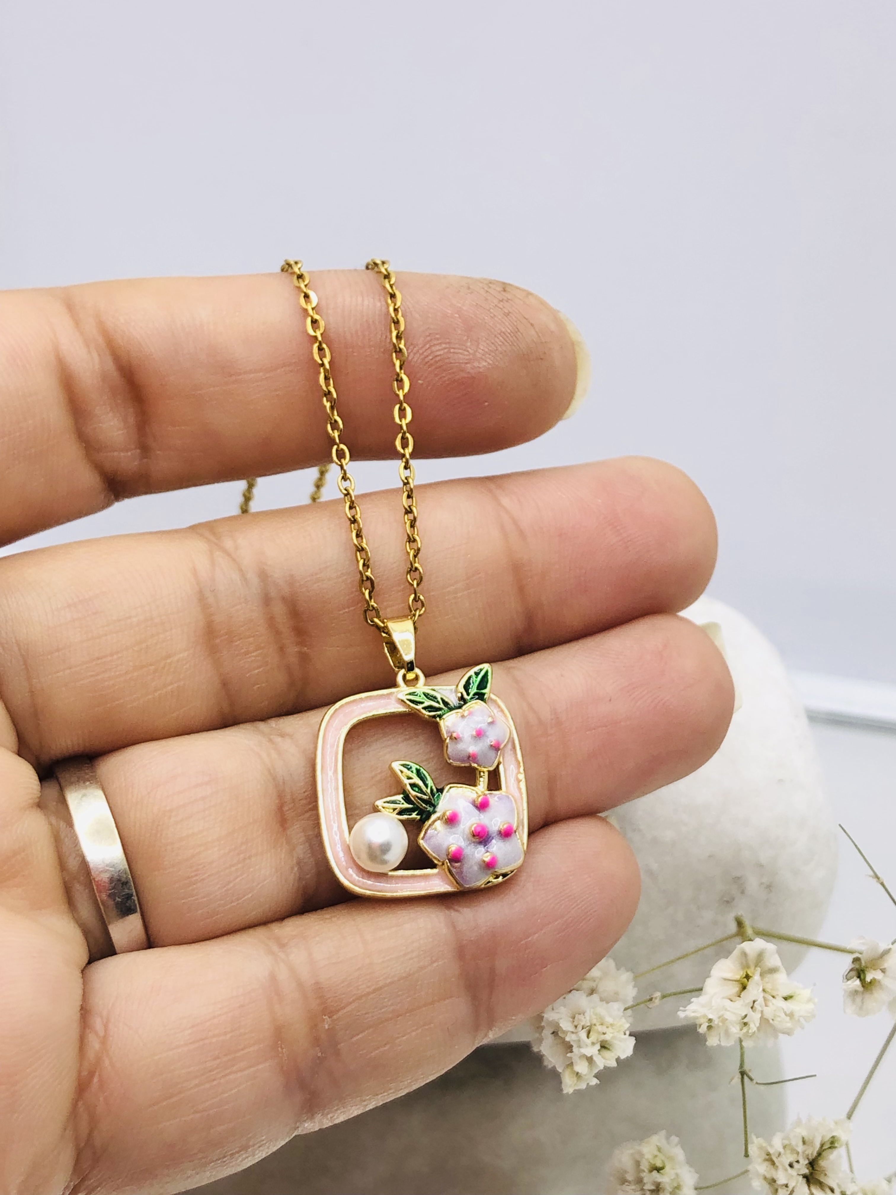 گردنبند میناکاری با جزییات خاص و زیبا